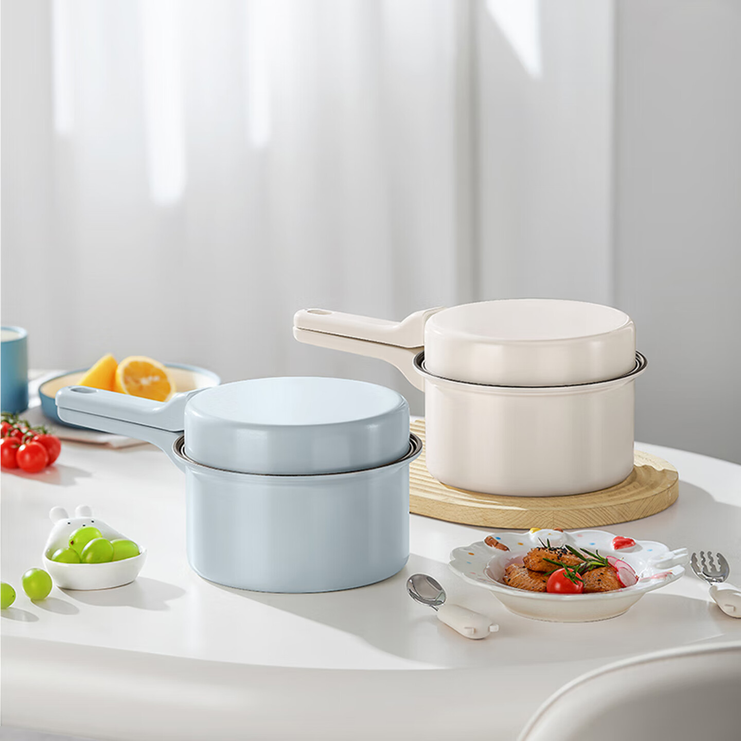 德世朗玲珑抗菌不粘锅套装 DFS-TZ869 米色/蓝色