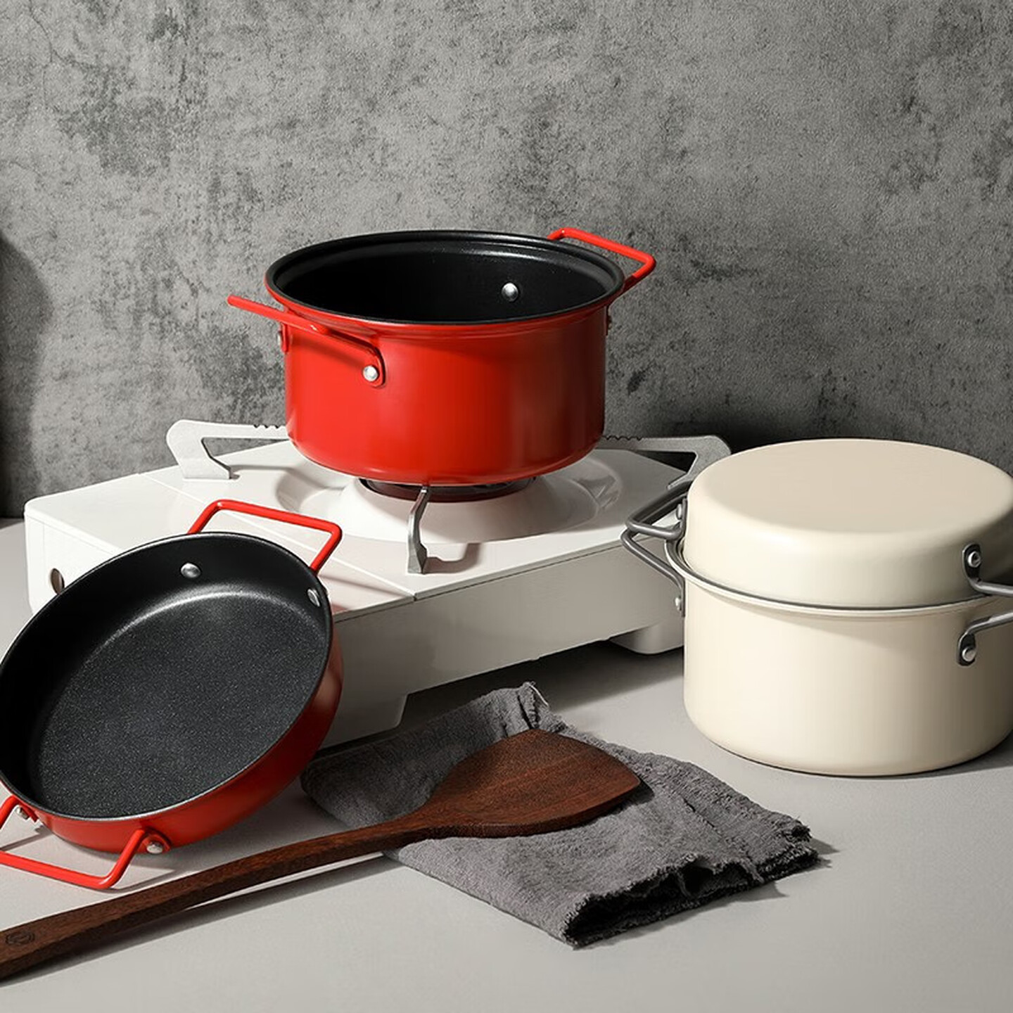 德世朗圆满抗菌不粘锅两件套 DFS-TZ875-RD 红色/米色