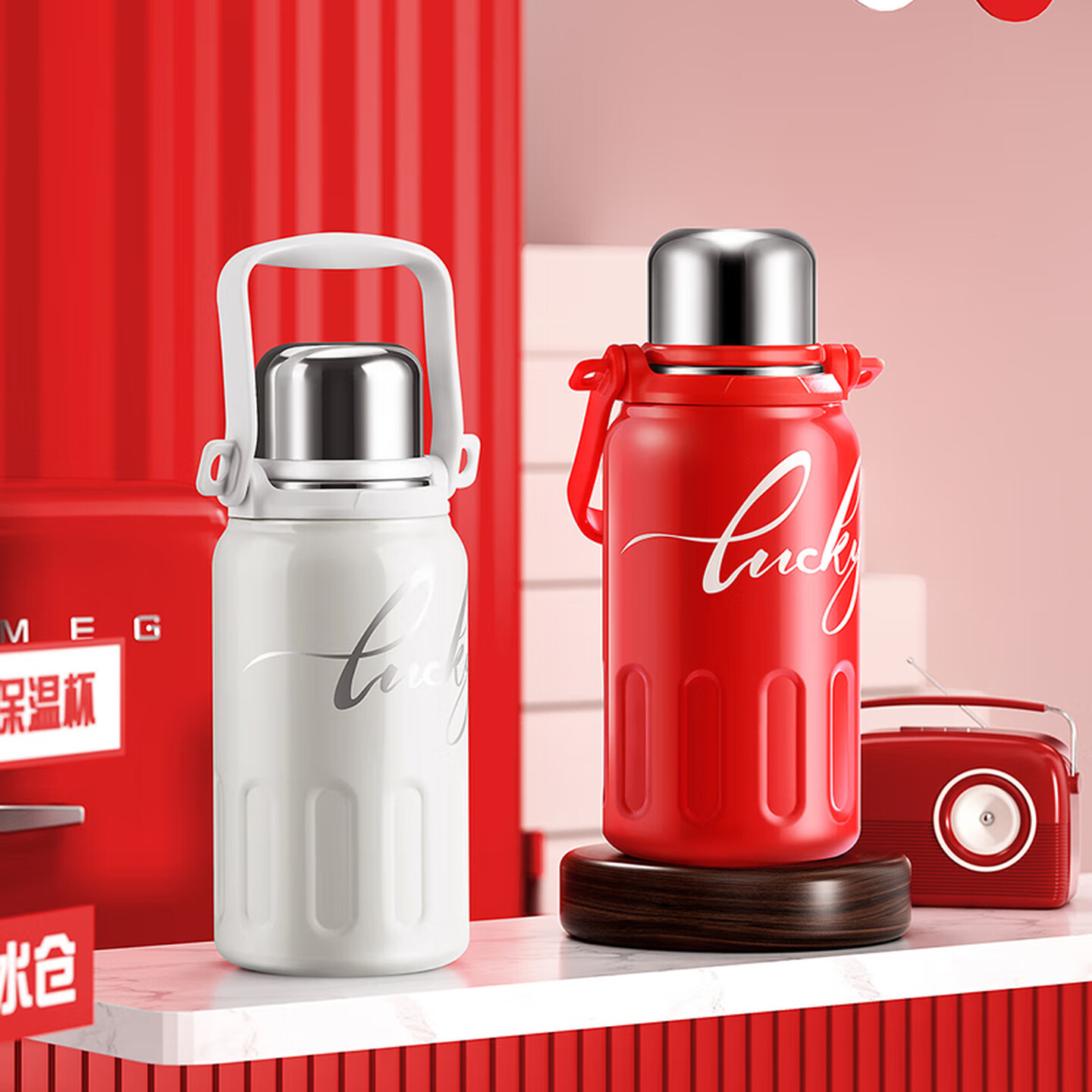 德世朗保温壶1000ML大容量旅行壶 小幸运系列DXYH-1000WH 白色/红色
