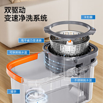 【五月花】——五月花旋转拖把34CM配2布家用拖把省力液压杆布条款免手洗家用拖地神器