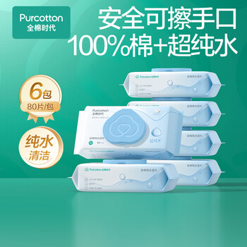 【全棉时代】——全棉时代(PurCotton)EDI超纯水湿巾 80抽*6包婴儿手口清洁湿纸巾100%棉